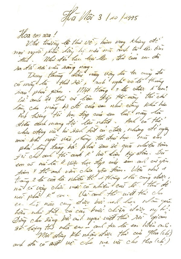 Sau này, khi Trọng Tấn ra Hà Nội học trường nhạc, Thanh Hoa ở lại Thanh Hóa, cũng nhờ những đường thư đã “giữ lửa” để họ yêu trong ngày tháng đợi chờ, cho đến một ngày về ở cạnh nhau. Ngoài tiếng hát, Trọng Tấn còn có “khiếu văn chương”, ngày ấy chính nhờ tài viết thư và làm thơ của cậu học trò nhà nghèo đã “cảm hóa” được cô gái vốn là hoa khôi của trường. Những bức thư tay là một trời kỷ niệm nên dẫu trải qua thăng trầm cuộc sống, biết bao lần chuyển nhà, Thanh Hoa vẫn giữ vẹn nguyên từng nét mực, đường gấp “một mình một kiểu” như của để dành.