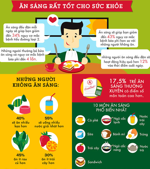 Người thường xuyên bỏ bữa sáng có xu hướng ăn nhiều kẹo, uống nhiều nước ngọt, ăn ít rau và trái cây nên nguy cơ béo phì cao gấp 4 lần, theo Health Plus.