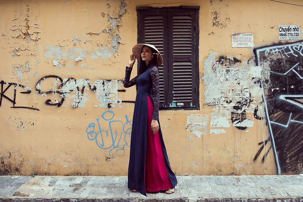 Hoàng Thuỳ đã giới thiệu đến người thầy của mình rất nhiều kiểu áo dài khác nhau: từ kiểu dáng truyền thống đến hiện đại, cách tân. Đặc biệt đi kèm với Áo dài còn có cả Nón Lá, khi kết hợp cả hai lại với nhau sẽ tạo nên một bộ trang phục đậm nét truyền thống.