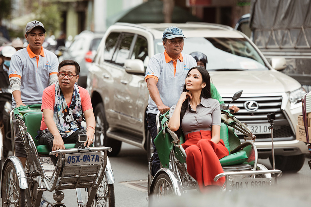 Tiếp theo đó, Hoàng Thùy đã cùng Santos Anjo trải nghiệm xích lô - một điểm đặc trưng của Sài Gòn.