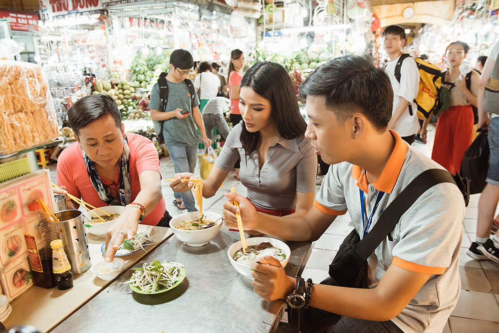Đặc biệt tại điểm dừng chân Chợ Bến Thành, cả hai quyết định thử món Phở đặc trưng Việt Nam.