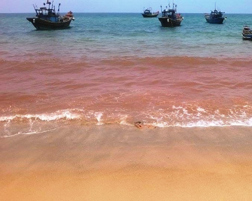 Chiều ngày 4/5, sau khi nhận được thông tin xuất hiện dải nước màu đỏ dạt thẳng vào bờ biển Nhân Trạch, huyện Bố Trạch, Quảng Bình khiến ngư dân nơi đây lo lắng, các chuyên gia môi trường quốc tế từ Mỹ, Đức, Nhật Bản, Israel, đã tức tốc vào hiện trường để tiến hành lấy mẫu thí nghiệm.