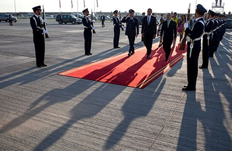 Khoảng 250 nhân viên mật vụ, hàng chục cố vấn và các đội chó nghiệp vụ được triển khai để bảo vệ tổng thống. Một số đặc vụ đeo loại kính đen đặc biệt, có gắn camera có thể ghi lại hình ảnh để chuyển thẳng về trụ sở của mật vụ Mỹ tại Washington. Khi tổng thống công du, Nhà Trắng phải di chuyển cùng với ông - từ xe ông đi, nước ông uống, cho tới loại xăng chạy xe, loại thức ăn mà ông dùng. Lực lượng hộ tống còn phải chuẩn bị sẵn một lượng máu nhóm AB dự trữ cho Tổng thống Obama khi cần cấp cứu.