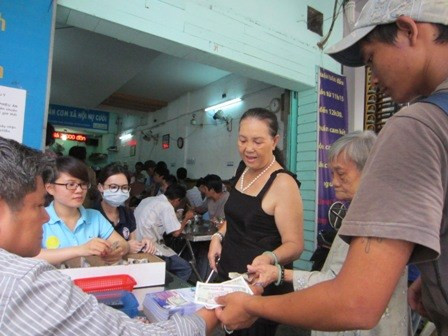 Thấy vậy, một người khách quen của quán ”Cơm trưa 2.000 đồng” (số 6 Hồ Xuân Hương, Q.3, TP.HCM) vừa dắt tay cụ già vào bàn tiếp viên vừa nói: “Thật đấy cụ ạ, chỉ ngần ấy tiền, cụ có thể vừa ăn no, vừa thấy sạch lại ngon nữa. Cụ chỉ cần mua phiếu ở bàn này là vào ăn ngay thôi”.