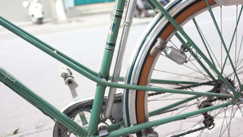 Anh Tiến Dũng là người chơi xe đạp cổ có tiếng đất Hà Thành. Chiếc xe hai bánh Peugeot màu xanh bạc hà đời 1951 của anh được xếp vào hàng độc nhất hiện nay.