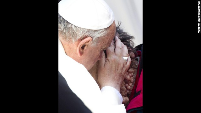 Vinicio vốn quen với cái nhìn chằm chằm hoặc sợ hãi của người đi đường. Ban đầu, anh hơi bối rối khi Giáo hoàng chẳng do dự đến ôm lấy mình. “Ông không sợ bệnh của tôi. Ông ấy ôm tôi mà chẳng nói gì… Tôi run lên, ông chặt Giáo hoàng. Tôi cảm thấy một sự ấm áp tuyệt vời”.