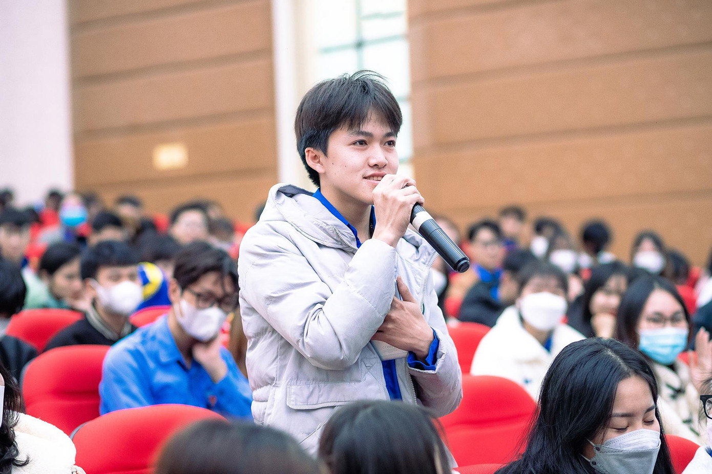 | Rất đông sinh viên đã hào hứng đặt câu hỏi cho các diễn giả. |