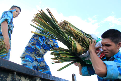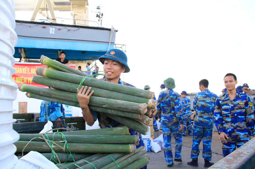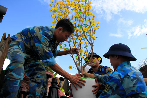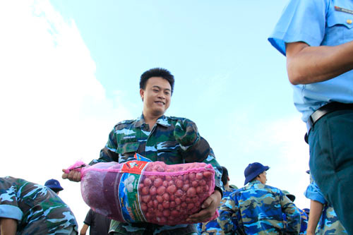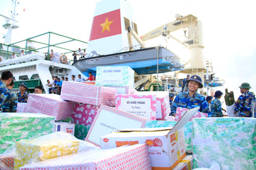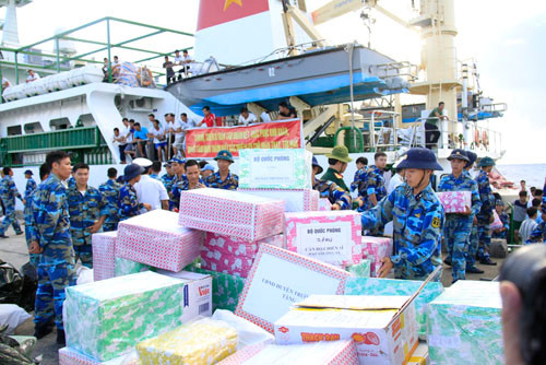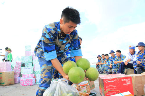 Các món quà Tết tặng chiến sĩ trên đảo gồm lương thực, thực phẩm, vật liệu gói bánh chưng, bánh kẹo, hoa quả, cây cảnh, đất trồng cây… của Bộ Quốc phòng, Vùng 4, Lữ đoàn 146, tỉnh Khánh Hòa, UBND huyện đảo Trường Sa cùng nhiều đơn vị, doanh nghiệp, đoàn viên, thanh niên…
