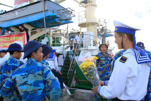 Nhận quà Tết từ đất liền, Trung tá Đỗ Thế Tuyến, Chỉ huy trưởng đảo, Chủ tịch UBND thị trấn Trường Sa cho biết: “Được đón đoàn công tác đến thăm và chúc Tết cán bộ, chiến sỹ và nhân dân trên đảo, chúng tôi rất xúc động với tình cảm gửi gắm từ đất liền. Sự quan tâm này tạo động lực cho chúng tôi có một niềm tin mới, động lực mới để đón xuân Bính Thân 2016 an khang, thịnh vượng, bảo vệ vững chắc chủ quyền thiêng liêng của Tổ quốc. Chúng tôi xin bày tỏ lòng biết ơn sâu sắc đến đồng bào, chiến sĩ cả nước đã quan tâm và hướng về Trường Sa, giúp đỡ chúng tôi về mọi mặt trong quá trình thực hiện nhiệm vụ bảo vệ chủ quyền biển đảo của Tổ quốc”.
