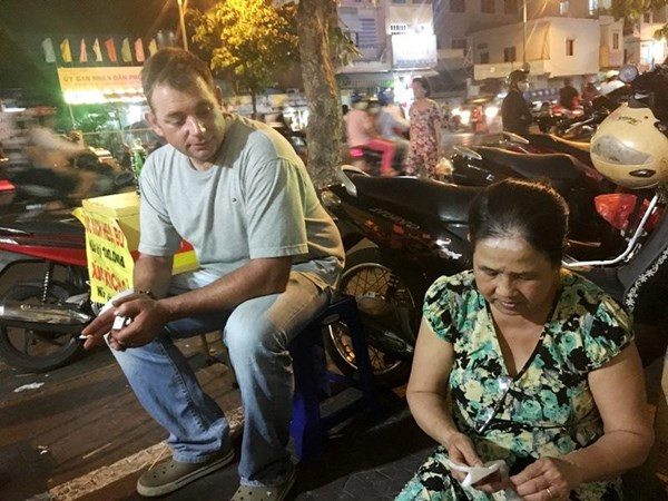 Chiều nào cũng vậy, bà Trần Thị Ngọc Liên đều ra đây phụ bán cùng với con gái và chàng rể ngoại quốc. Bà Liên cười giòn: “Tôi không biết tiếng Anh, tiếng U nên không đọc được hết cái tên dài ngoằng của nó. Nghe con Trinh gọi nó là Líp, tôi cũng gọi vậy. Nói chuyện với nó tôi phải… diễn xuất, huơ tay, nhưng nó hiểu hết trơn”.