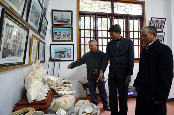 Hay nằm một góc trang trọng khác trong bảo tàng đặc biệt này là những vỏ sò, vỏ ốc, những cưa, những đục, những bay... những dụng cụ làm mộc và xây dựng quen thuộc ấy đã cùng với hàng trăm nông dân làng Bỉnh Di (xã Giao Thịnh, Giao Thủy, Nam Định) đi kiến thiết đảo Trường Sa suốt hơn 20 năm qua. Nay trở về nằm một góc trang trọng tại bảo tàng, nhắc nhớ các thế hệ sau về một làng xây đảo.
