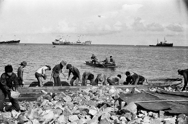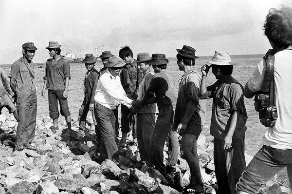 Công binh xây đảo Tiên Lữ vào tháng 8 năm 1988. Ảnh tư liệu Binh chủng Công binh.