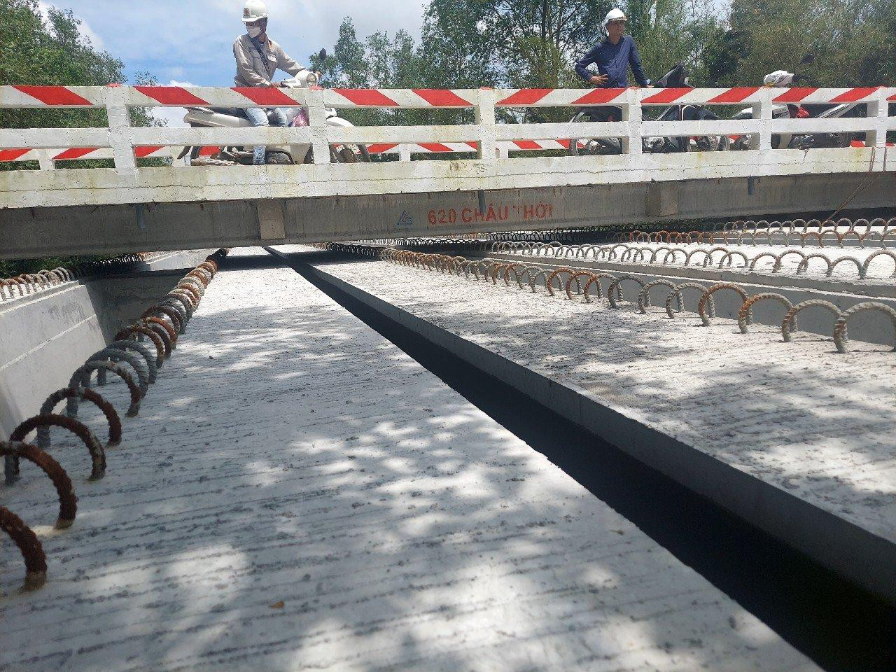 Công tác cấp dầm để lao lắp chỉ có phương án duy nhất vận chuyển bằng đường thủy, với đặc thu lòng sông nhỏ hẹp lại trong giai đoạn các đơn vị tập trung vận chuyển tập kết vật liệu nên xà lan dầm khi vào sông Kinh Mới phải nằm chờ để tránh nhau và phụ thuộc con nước do vướng tĩnh không các cầu dân sinh do đó công tác vận chuyển dầm về công trường chậm nên ảnh hưởng đến tiến độ lao dầm và bản mặt cầu.