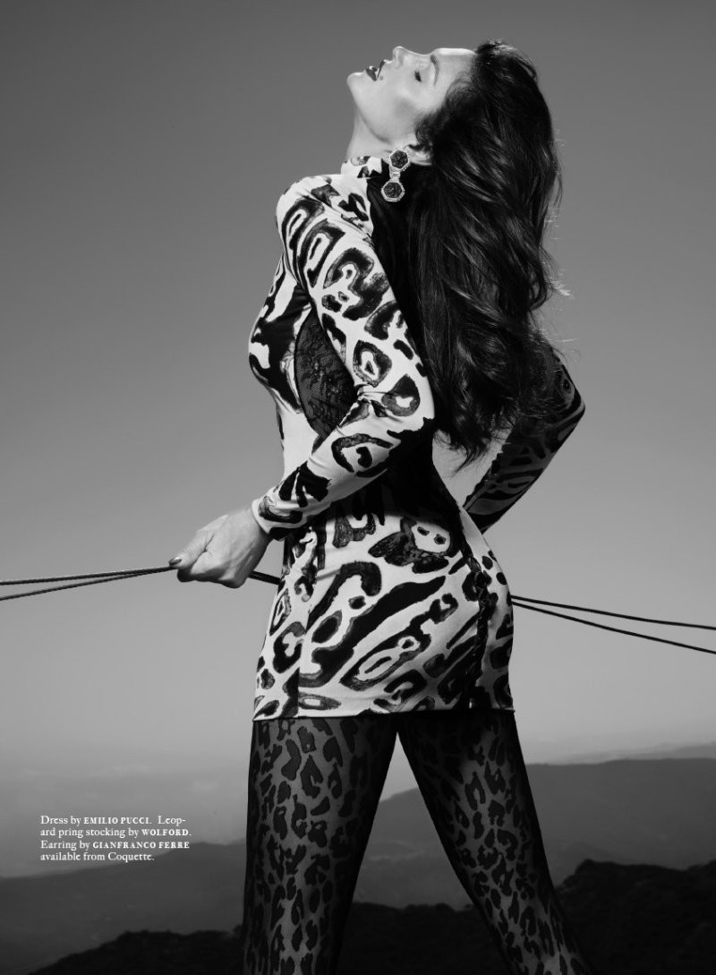 Trong những bức hình đen trắng chụp cho tạp chí FutureClaw, người đẹp với nốt ruồi trứ danh đã diện trang phục trong các bộ sưu tập thời trang mới nhất của Dolce & Gabbana, Miu Miu, Sonia Rykiel, Lanvin, Emilio Pucci và Gianfranco Ferre. Ở cô vẫn toát lên vẻ quyến rũ và tràn đầy sức sống.