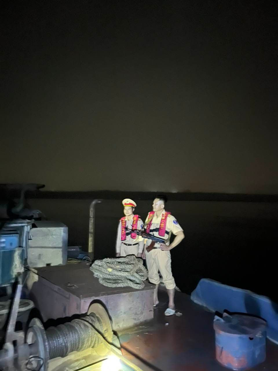 Cụ thể vào khoảng 0h15 cùng ngày, tổ công tác của Thủy đoàn I (Cục CSGT) làm nhiệm vụ phát hiện tàu VR07032015 (không gắn biển kiểm soát) có dấu hiệu khai thác cát trái phép trên sông Hồng nên kiểm tra.