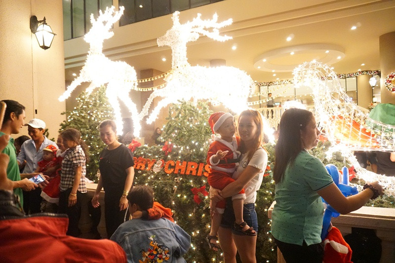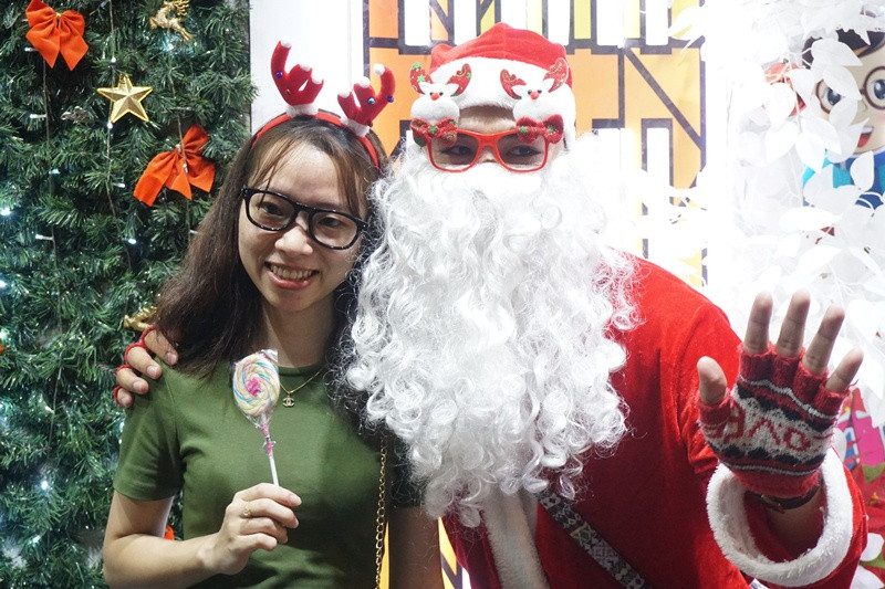 Trong khi đó tại các điểm vui chơi Noel, người dân ùn ùn đổ về.