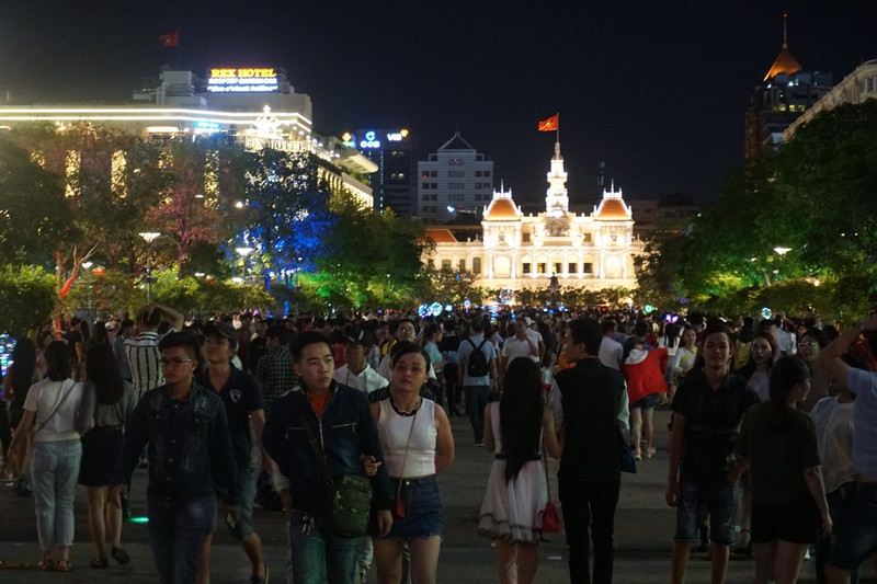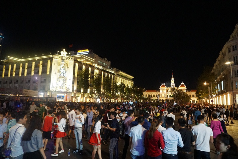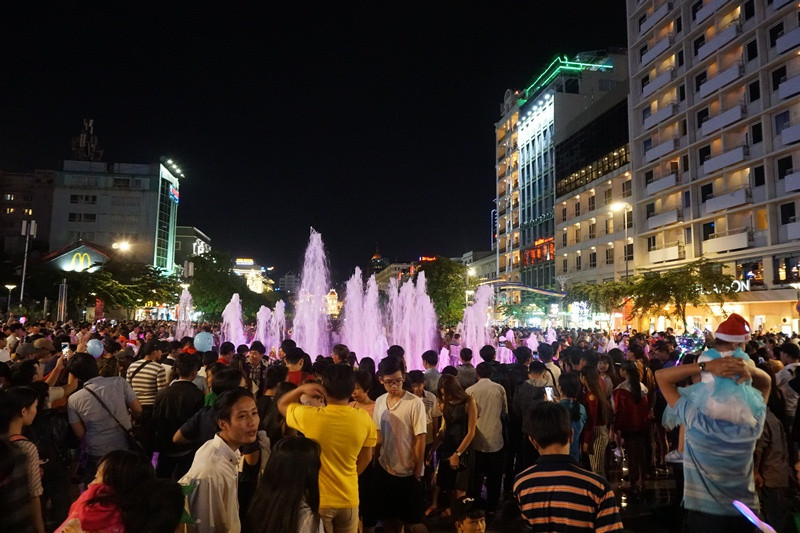 Hàng nghìn người trên phố đi bộ Nguyễn Huệ trong đêm 24/12