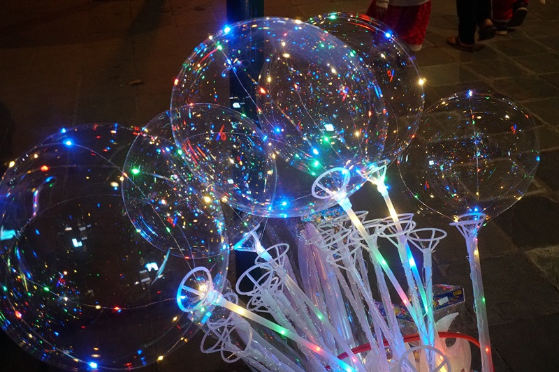 Các dịch vụ "ăn theo" mùa Noel nở rộ trong đêm 24/12 từ bong bóng galaxy, các dụng cụ trò chơi phát sáng, bong bóng tạo hình....