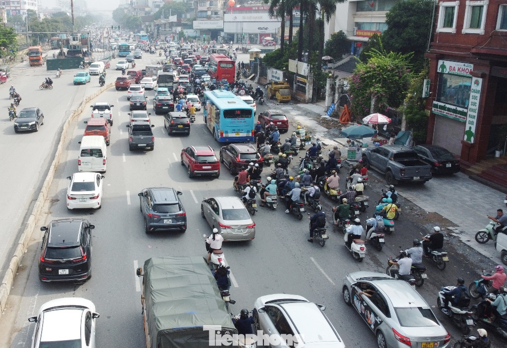 | Giao thông ùn tắc kéo dài trên đường Giải Phóng dẫn đến nút giao Kim Đồng theo hướng vào nội thành. |