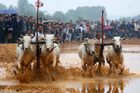 Đây là một trong chuỗi hoạt động văn hóa dân gian của Tuần lễ Đại đoàn kết các dân tộc – Di sản văn hóa Việt Nam, lễ hôi đua bò Bảy Núi hấp dẫn hàng ngàn du khách đến xem trong buổi sáng 21/11/2013 tại Làng Văn hóa – Du lịch các dân tộc Việt Nam, Đồng Mô, thị xã Sơn Tây, Hà Nội.