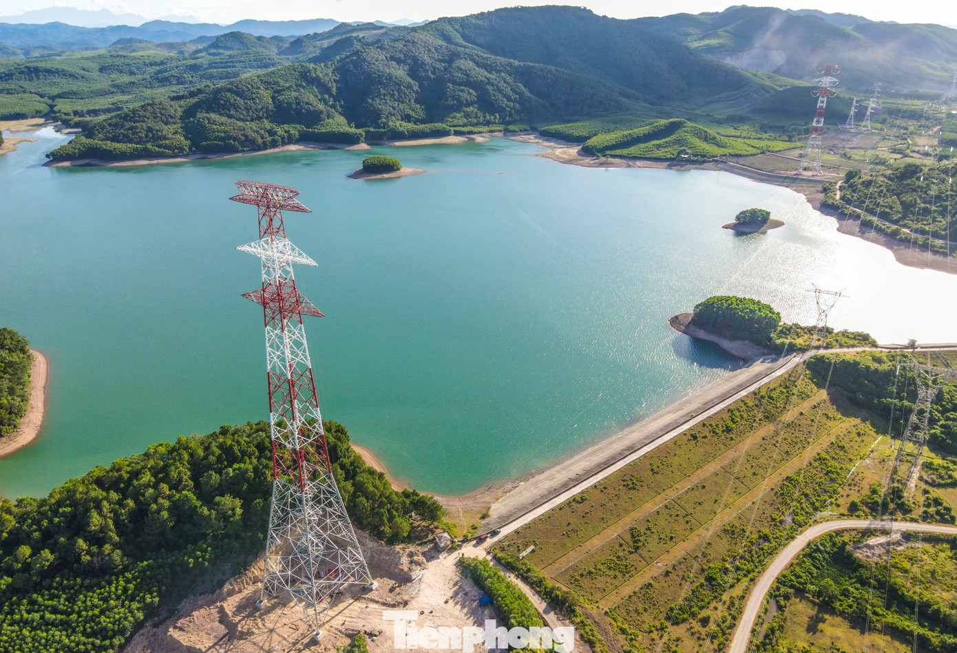 Tại vị trí cột 135 và 136 qua huyện Cẩm Xuyên (Hà Tĩnh), từng tốp công nhân của Công ty Cổ phần PC1 Hà Nội đang kéo những sợi cáp điện đầu tiên lên trụ cao 145m. Do đường dây vượt hồ Thượng Tuy, khoảng cách giữa 2 cột này dài hơn 1km, để đảm bảo an toàn khoảng cách, 2 cột được thiết kế cao hơn và trở thành cột đỡ.
