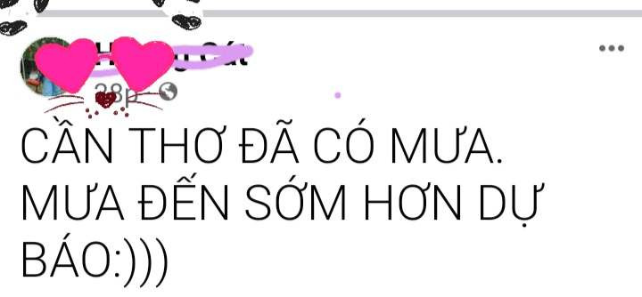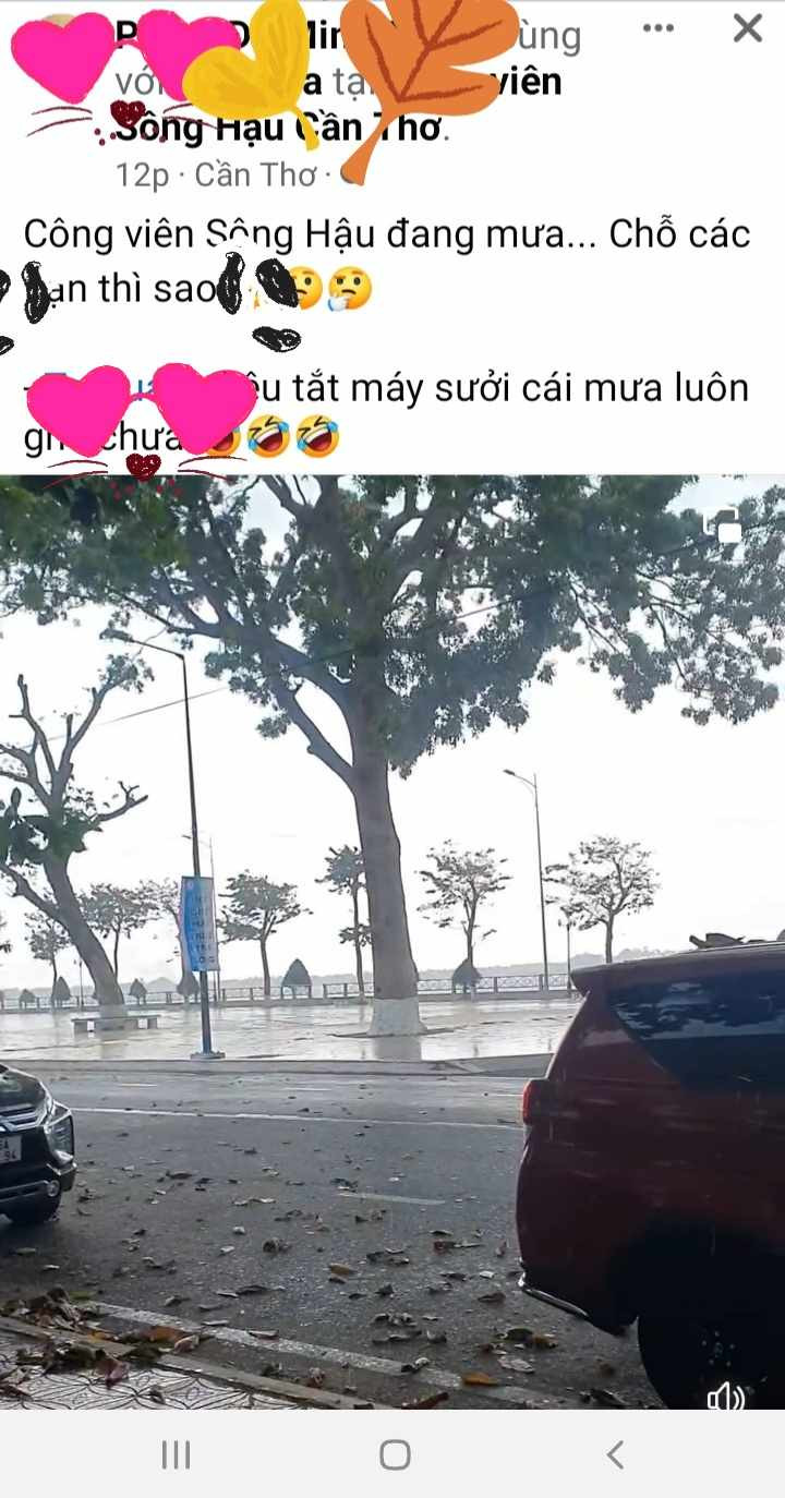 | Nhiều người cùng chia sẻ ở nhiều địa điểm khác nhau ở Cần Thơ, cho thấy cơn mưa "vàng" xuất hiện rộng trên địa bàn thành phố, mặc dù kéo dài không lâu. |