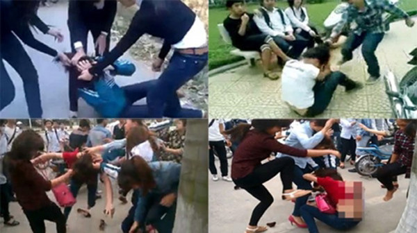 Ở Quận 7, TP HCM đã từng xảy ra sự việc nữ sinh bị đánh hội đồng vì mâu thuẫn tình cảm được đăng tải lên mạng xã hội. Không chỉ vậy, nữ sinh này còn bắt bạn phải liếm bàn chân của mình và dùng tàn thuốc lá đang cháy chích vào tay bạn nữ sinh. Nhiều người xem clip này đều thấy bàng hoàng, vô cùng phẫn nộ trước hành động dã man, đáng sợ của nhóm nữ sinh này.