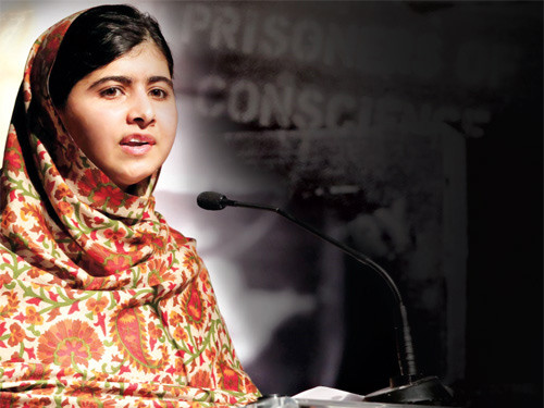 | Chân dung Malala Yousafzai - Một trong 100 Nhân vật có ảnh hưởng nhất thế giới do tạp chí TIME bầu chọn 2013 - Giải thưởng Vì hòa bình của trẻ em thế giới 2013 - Giải thưởng Đại sứ lương tâm của Tổ chức Ân xá quốc tế 2013 - Chung tay thành lập Quỹ Malala để đẩy mạnh giáo dục cho bé gái - Cùng với 3 triệu người khác ký tên vào Kiến nghị Malala nhằm thúc giục LHQ đẩy mạnh Mục tiêu Phát triển thiên niên kỷ về phổ cập giáo dục tiểu học khắp thế giới. |