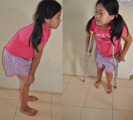 Đó là câu chuyện của cô bé Trần Thị Mai Anh (hiện đang học lớp 5M – Trường Tiểu học Nam Thành Công, Hà Nội). Không đi lại được bình thường như các bạn khác, việc di chuyển của Mai Anh hoàn toàn phụ thuộc vào chiếc nạng, không chỉ thế cột sống của em còn bị cong vẹo một cách nghiêm trọng.