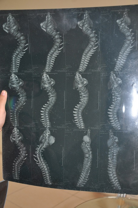 Rồi tiếp tục những lần khám sau các kết luận về bệnh của cháu là hoại tử chỏm xương đùi vô khuẩn, hoại tử vô mạch chỏm xương đùi 2 bên giai đoạn IV. Năm 2013, cháu phải tiến hành 3 cuộc mổ: lần 1 vào tháng 5 để lấy thanh nâng ngực đã được đưa vào từ 3 năm trước; lần 2 vào tháng 6 mổ giãn dây chằng chân trái; lần 3 vào tháng 7 mổ giãn dây chằng phải và bó bột cả 2 chân trong vòng 40 ngày…