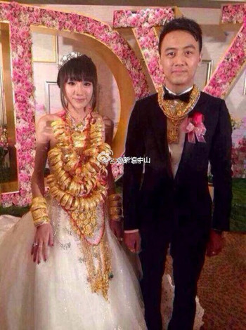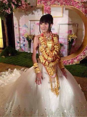 Nhiều người cho rằng cô dâu này phải hết sức cẩn thận để hông gãy cổ khi phải "gánh vác" hàng chục kg vàng.