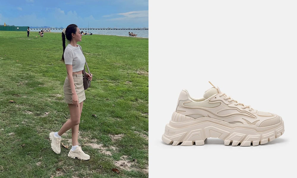 “Cô dâu hào môn” Midu lựa chọn một thiết kế của thương hiệu bình dân, giá 2,2 triệu đồng. Mẫu giày có phần đế cao, giúp Midu "hack dáng" đáng kể.