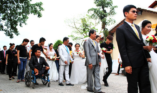 Đám cưới của những cặp đôi khuyết tật, công nhân, người có hoàn cảnh khó khăn thu hút khá nhiều người đến tham dự. Nhiều cô dâu chú rể chia sẻ, nhờ được tổ chức chứ chẳng biết bao giờ mới đủ tiền làm một đám cưới đàng hoàng. Ông Nguyễn Minh Thành, Chủ tịch Hội dạy nghề TP HCM cho biết, lễ cưới tập thể vừa mang lại niềm vui, tiếng cười cho người có hoàn cảnh khó khăn đồng thời mang đến niềm vui cho chính những người thực hiện.