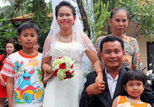 Vợ chồng anh Dũng đã sống với nhau được 12 năm tại Đồng Tháp. Anh cho biết, hàng ngày chạy xe lăn đi bán vé số, vợ ở nhà chăm 2 con nhỏ. "Tiền bán vé số thiếu trước hụt sau với 4 nhân khẩu trong gia đình nên đám cưới hôm nay là ước mơ thành hiện thực. Cực khổ nhưng tui chỉ mong một ngày được làm cho vợ vui, có được bộ ảnh cưới để sau này già ngắm nhìn", anh Dũng hạnh phúc nói.