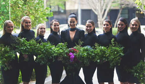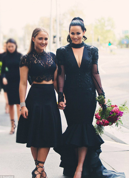 Không chỉ mình cô dâu mặc váy đen, tất cả các phù dâu cũng mặc váy dài màu này.