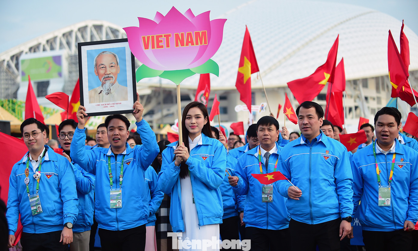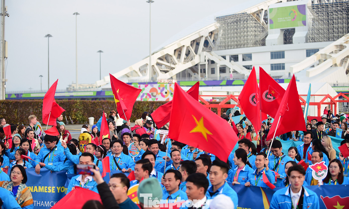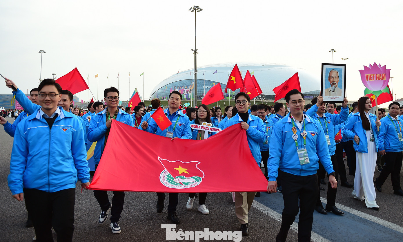 Trong khuôn khổ Liên hoan Thanh niên Thế giới năm 2024 diễn ra tại Sochi (Liên bang Nga) diễn ra lễ diễu hành đại biểu các nước. Đây là một trong những hoạt động được mong chờ nhất của Liên hoan. Ảnh: Xuân Tùng