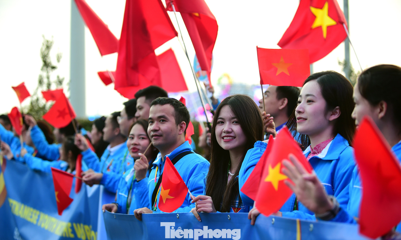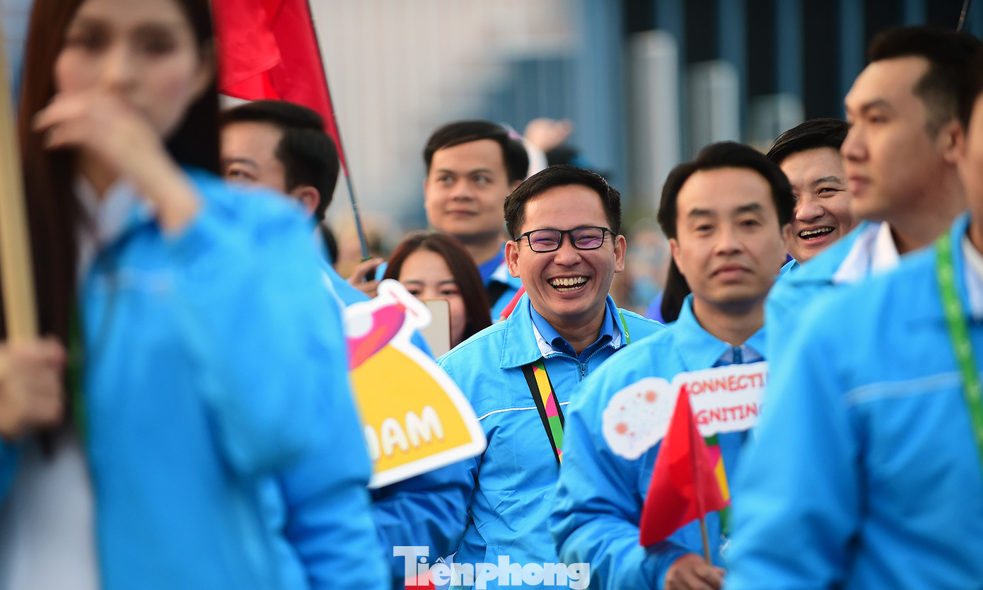 Dẫn đầu đoàn Việt Nam là lá cờ đỏ sao vàng, cờ Đoàn TNCS Hồ Chí Minh và ảnh Bác. Bí thư T.Ư Đoàn Ngô Văn Cương và các đại biểu, thanh niên Việt Nam đã ca vang nhiều ca khúc sôi động về tình yêu quê hương đất nước, tuổi trẻ Việt Nam, Chủ tịch Hồ Chí Minh và hòa bình, đoàn kết. Nhiều người hát theo “Việt Nam, Hồ Chí Minh. Việt Nam, Hồ Chí Minh” cùng những bước đi của Đoàn.