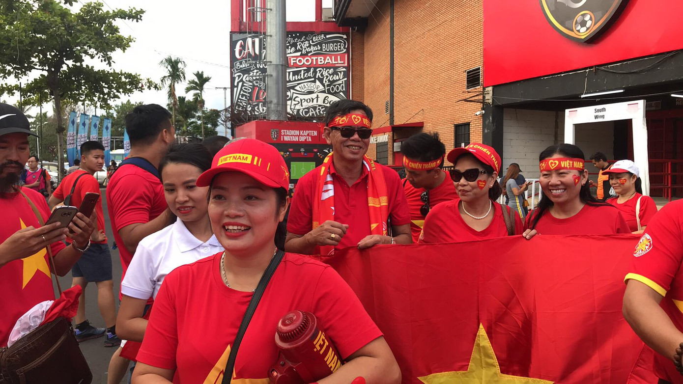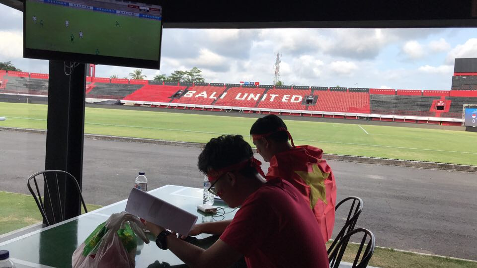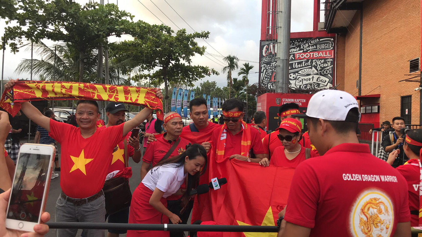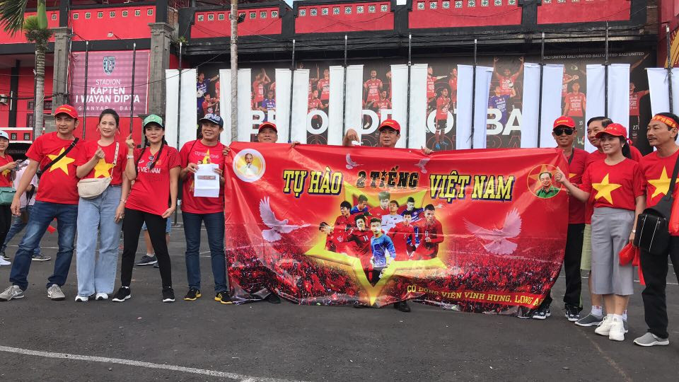 Nhiều tiếng trước giờ bóng lăn ở trận đấu giữa Indonesia và Việt Nam, các CĐV Việt đã tới sân Kapten I Wayan Dipta (Bali, Indonesia) để sẵn sàng tiếp lửa cho đoàn quân của HLV Park Hang Seo.