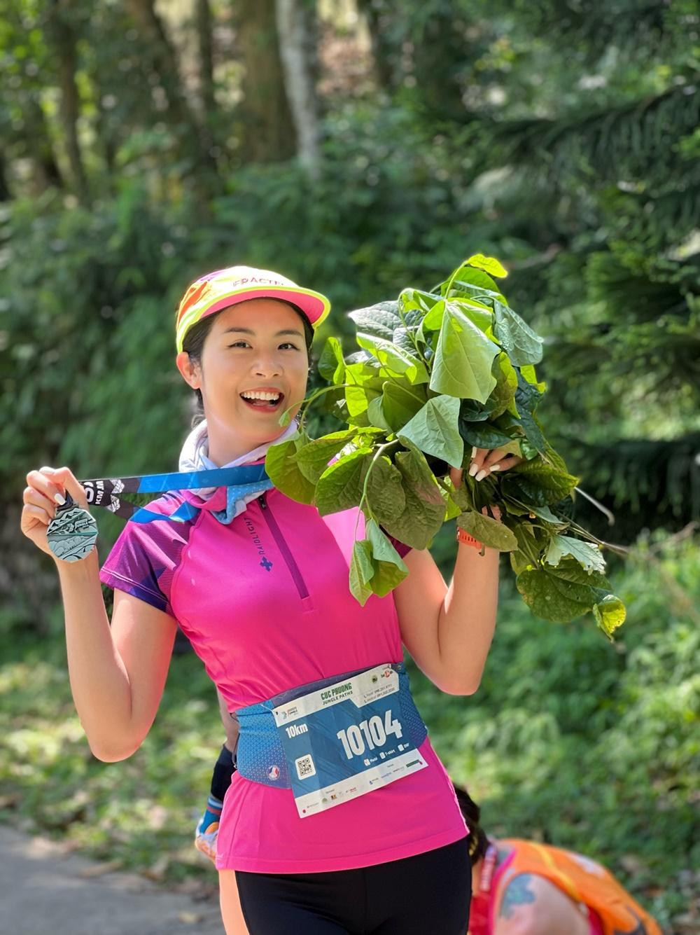 “Tôi không sợ sẽ bị đen da mà chỉ lo mình không đủ sức chinh phục 10km đường rừng. Tôi đã chơi golf, tập gym nhưng chưa bao giờ thử sức chạy marathon. Ban đầu, tôi không định đăng ký giải, bạn bè động viên nhiều, thậm chí gửi tặng trang phục nên tôi đã vui vẻ đồng ý. Tôi coi đây là thử thách mới để khám phá giới hạn của bản thân”, Ngọc Hân chia sẻ.