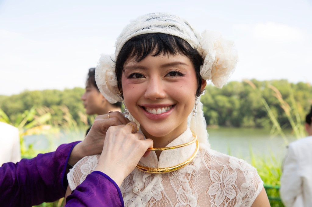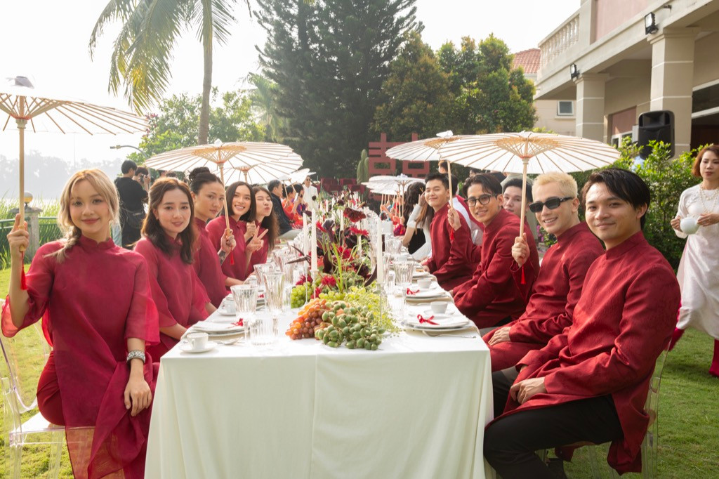 | Dàn bê tráp lưu lại khoảnh khắc đáng nhớ bên Khánh Linh và Minh Kông. |