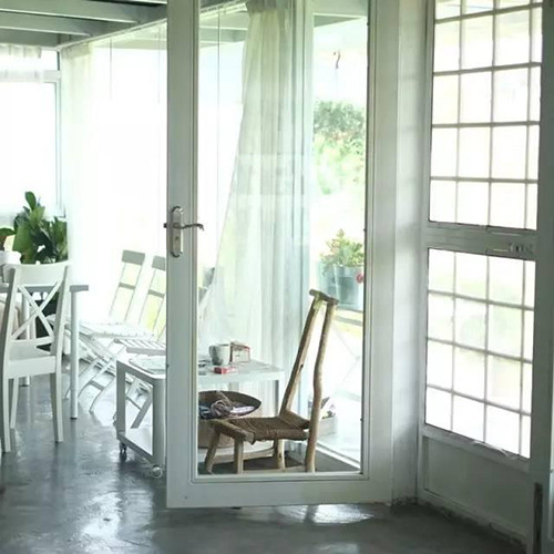 Ngôi nhà mang nét kiến trúc Bắc Âu với hầu hết đồ dùng mang tông màu trắng, sàn láng xi măng. Nhà nằm trong không gian rộng hàng trăm m2 nên có thể thoải mái mở cửa kính ở nhiều phía.