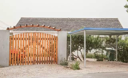 Sau khi sở hữu được khuôn viên này, cô bắt đầu tiến hành cải tạo. Kết cấu chính của nhà, hệ thống cột được giữ nguyên để tiết kiệm chi phí. Chủ nhà làm lại cửa, hàng rào và thêm mái hiên che mưa nắng.