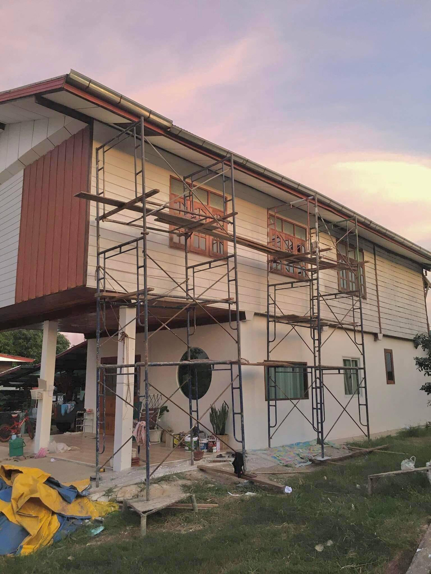 | Công trình trong hình vốn là nhà sàn gỗ của gia đình nông dân người Thái Lan nhưng đã xuống cấp và tầng trệt vô cùng ẩm thấp. Do đó, cô con gái 25 tuổi của gia đình đã dùng tiền bán hàng online của mình để giúp bố mẹ cải tạo lại ngôi nhà. |