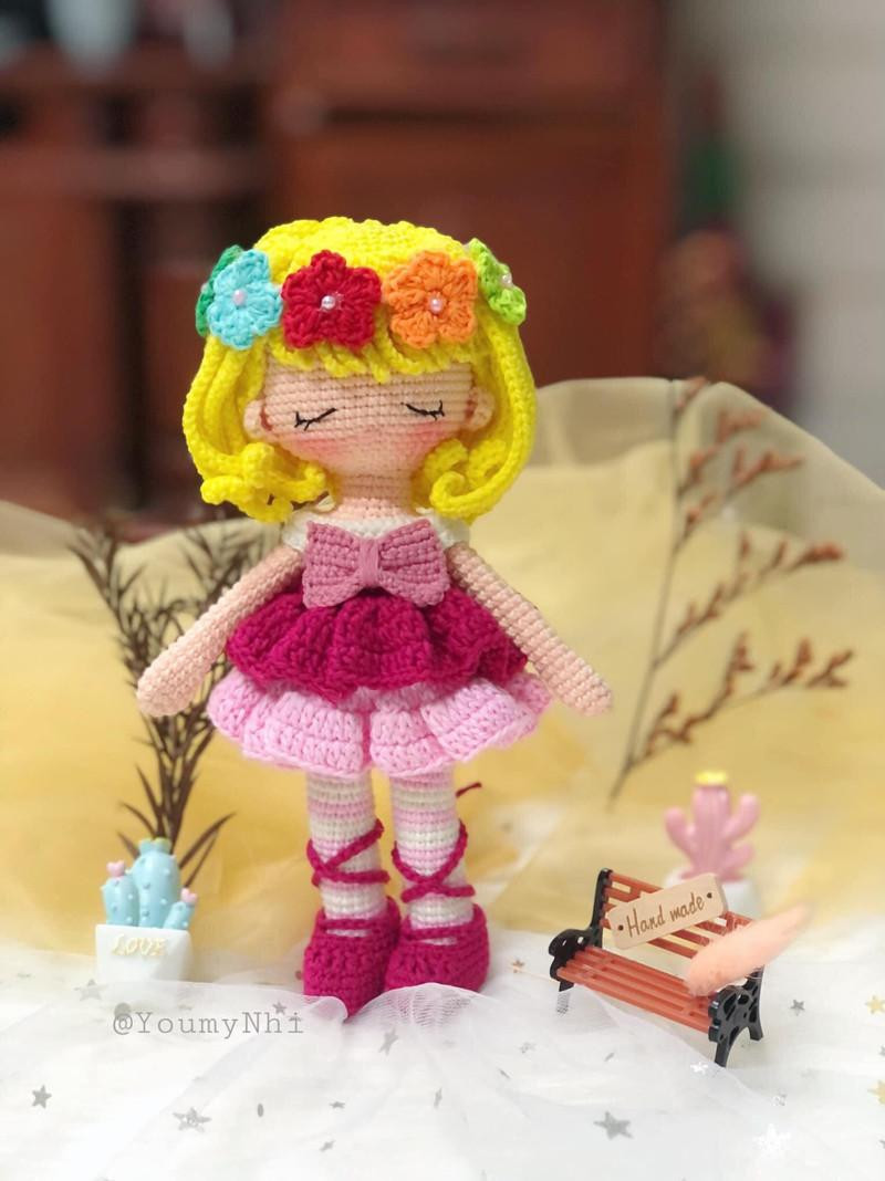 “Những nàng búp bê mình làm đều được móc bằng len, từng mũi móc, từng cái cúc áo, từng cái nơ đều được đính thủ công hoàn toàn. Chất liệu len mình chọn thường là milk mác xanh, milk cotton 125gr, milk xuất Hàn” Tuyết Nhi cho biết.