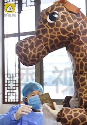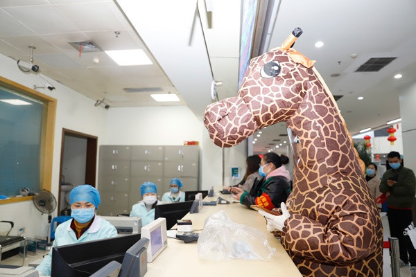 "Hươu cao cổ" đứng chờ lấy thuốc thu hút sự chú ý của những người tại bệnh viện ở Luzhou, Tứ Xuyên (Trung Quốc).