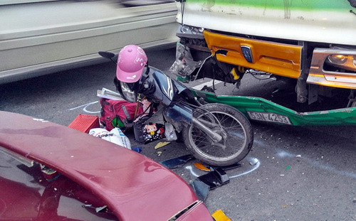 Đến đoạn cách cầu vượt An Sương khoảng 100 m, cô được cho là đột ngột chuyển qua làn ôtô để chạy lên cầu vượt. Xe buýt số 24 do tài xế Lê Thanh Hòa (62 tuổi) cầm lái phía sau lao tới, húc xe cô gái về phía trước, đâm vào ôtô con.