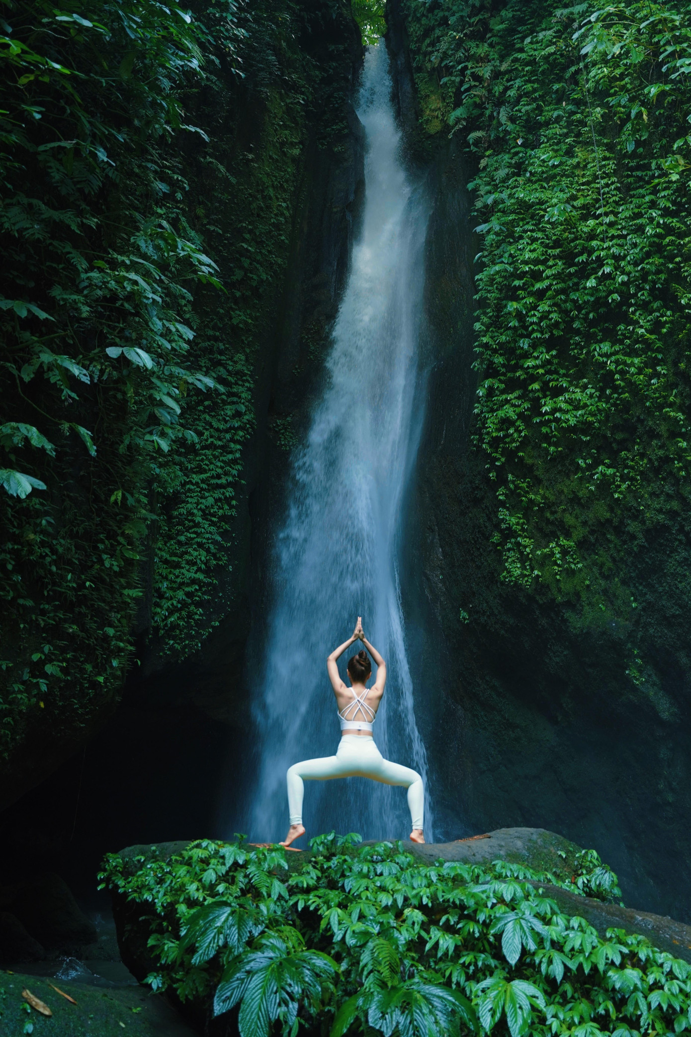 | Phụng Yến với khoảnh khắc yoga ấn tượng tại thác Banyu Wana (Bali, Indonesia) trong chuyến đi hồi tháng 5 vừa qua. |