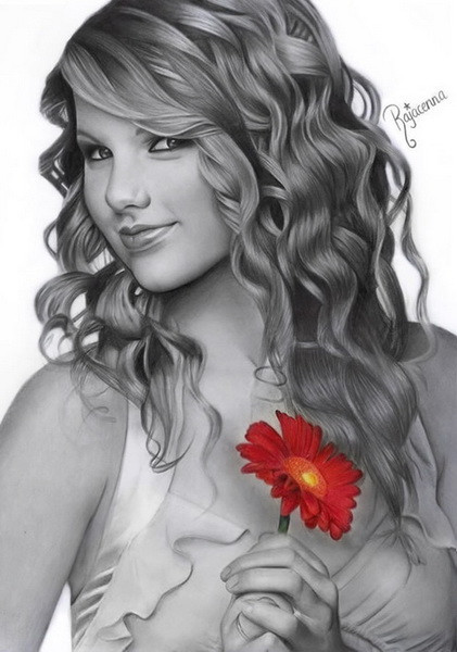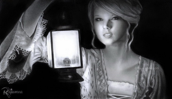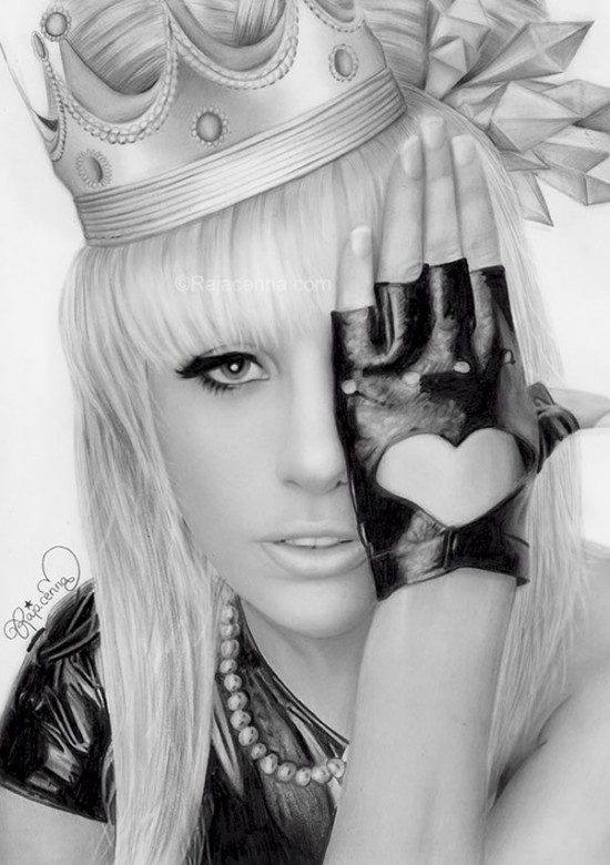 Dưới ngòi bút tài năng của Rajacenna, các nhân vật hiện lên một cách vô cùng sống động. Nhìn tranh vẽ của Rajacenna không ít người lầm tưởng đó là ảnh chụp đen trắng. Cô bạn người Hà Lan này đã thực hiện rất nhiều tác phẩm chân dung của những nghệ sĩ nổi tiếng như: Lady Gaga, Taylor Swift, Justin Bieber, Angelina Jolie…