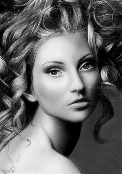 Nếu nhìn những tranh vẽ chì của Rajacenna, ít người nghĩ rằng chúng được thực hiện bởi một cô gái mới có 18 tuổi. Rajacenna sinh năm 1993, người Hà Lan, thực sự là một tài năng trong lĩnh vực hội họa. Rajacenna bắt đầu vẽ tranh chân dung bằng chì từ năm 2009, nhưng cô bạn này lại chưa từng tham gia bất kỳ một lớp học vẽ nào.