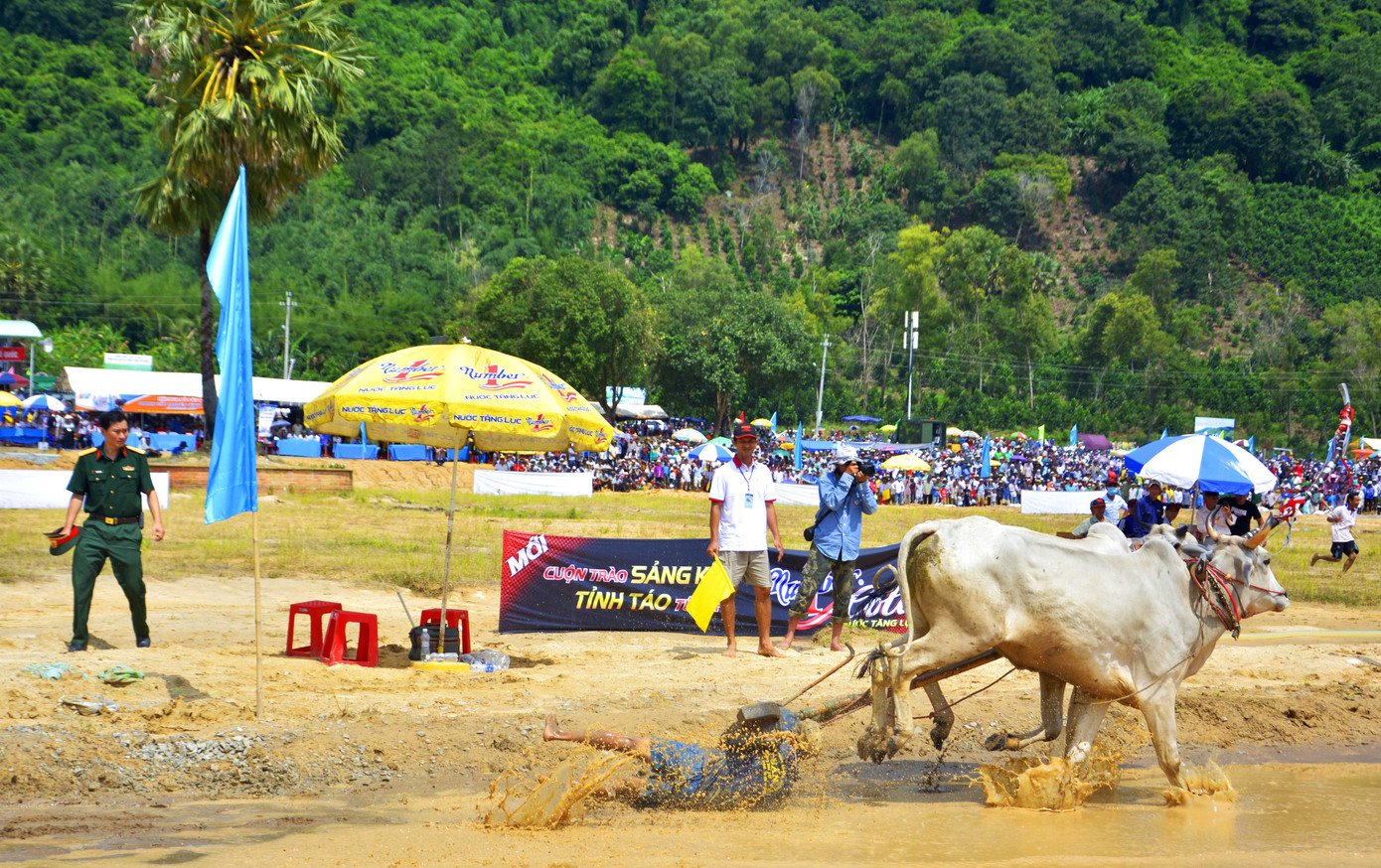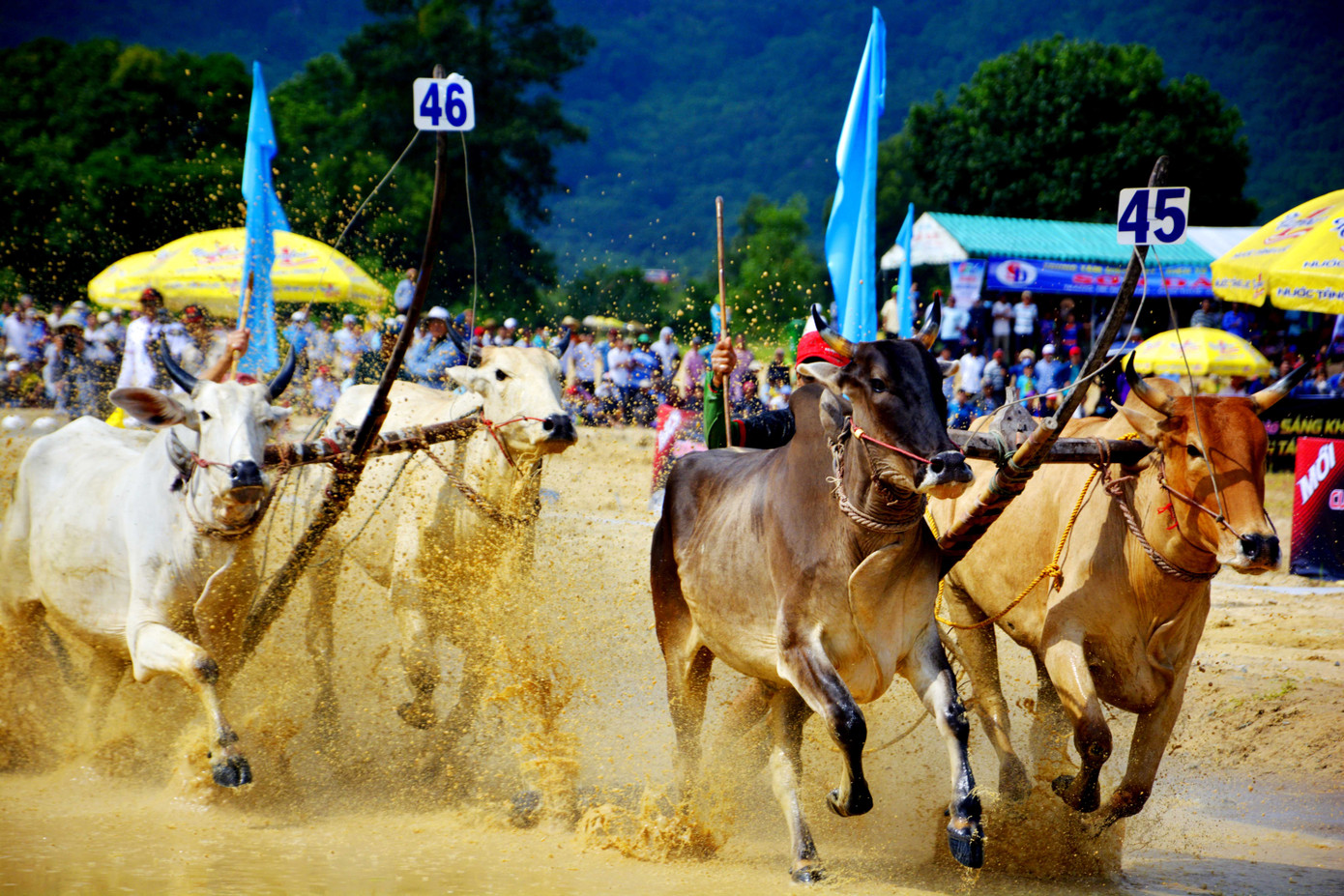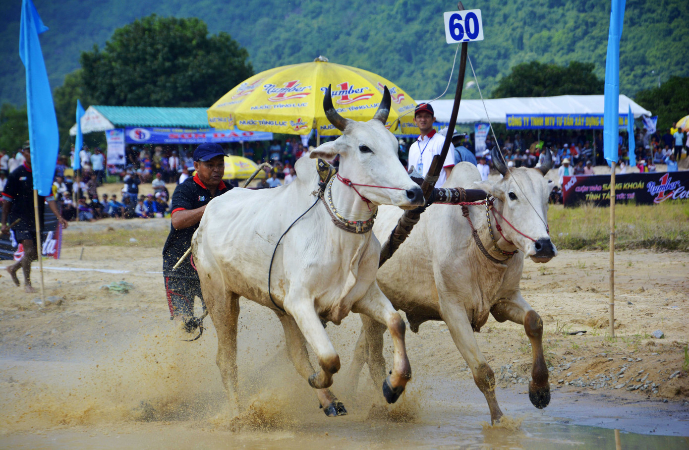 Vào vòng "thả", người điều khiển liên tục thúc đôi bò tăng tốc về đích.
